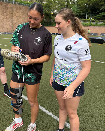 But she did have time to watch our contact minis U9-12 training at the North Plaza Pitch, and spoke to them about her journey from her first rugby training with Pirates to the very top of women’s global rugby.